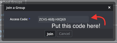 On the new page, press "Join Group" and input the code ZCHS-46BJ-HXQ69 to join!